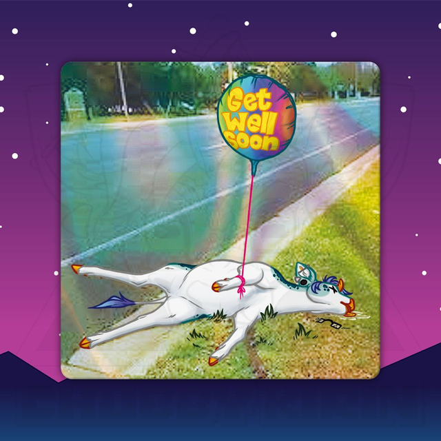 Un sticker d'un kirin un peu "décédé" sur fond holographique !